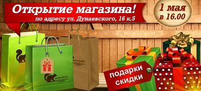 Приглашаем Вас 1 мая в 16.00 на открытие торгово-выставочного зала по адресу ул. Дунаевского, 16 к.5. Всех гостей ждет беспроигрышная лотерея – подарки получат все пришедшие в этот день! Что для этого нужно? Запомнить промо-код (ДКН) и прийти на открытие. Среди подарков: кедровые шайки и ковши, запарники, банные шапки и рукавицы, ароматные фитосборы и фиточаи.