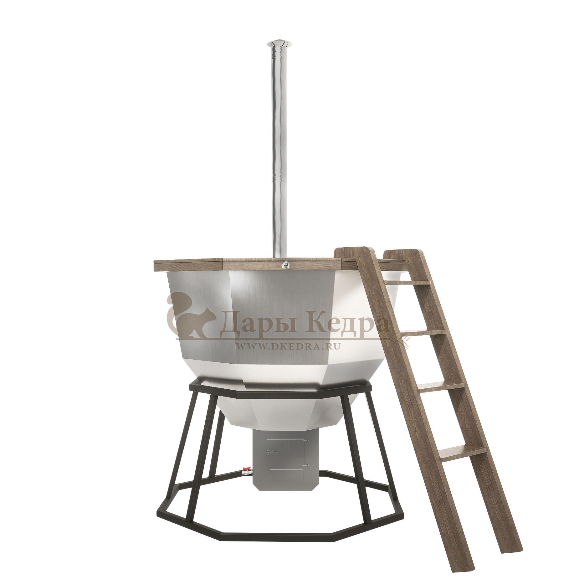 Банный чан из нержавеющей стали Ø-1750 на подставке с приварной печью с водяной рубашкой