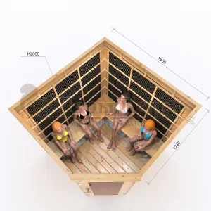 Четырёхместная угловая инфракрасная сауна кабина из кедра с карбоновыми излучателями