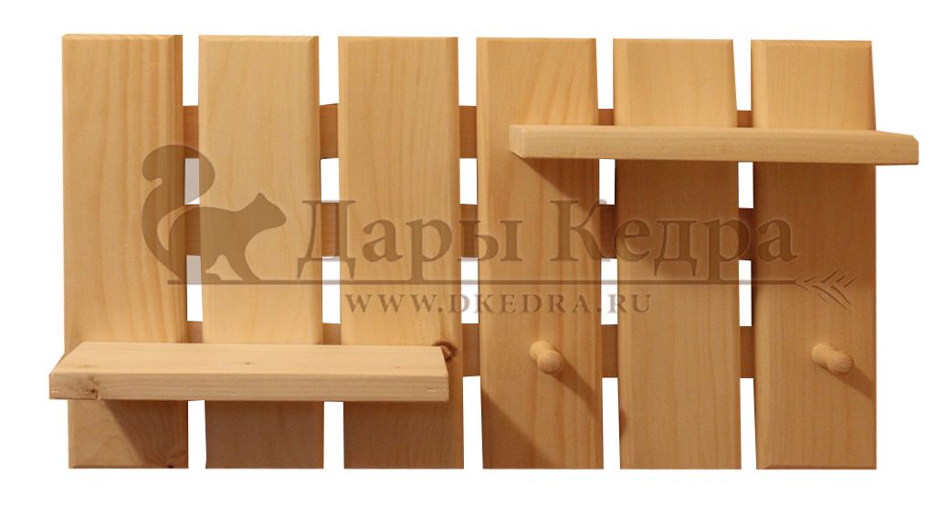 Вешалка с полкой из кедра Порадуйте себя и своих близких вешалкой из натурального дерева. Она станет оригинальным нужным подарком, украсит прихожую, баню или станет дополнением к основному подарку для новосёлов. Возможно изготовление по Вашим размерам. Покрытие в цвет, браширование, дополнительное оформление - также по Вашему желанию (в стоимость не входит).
