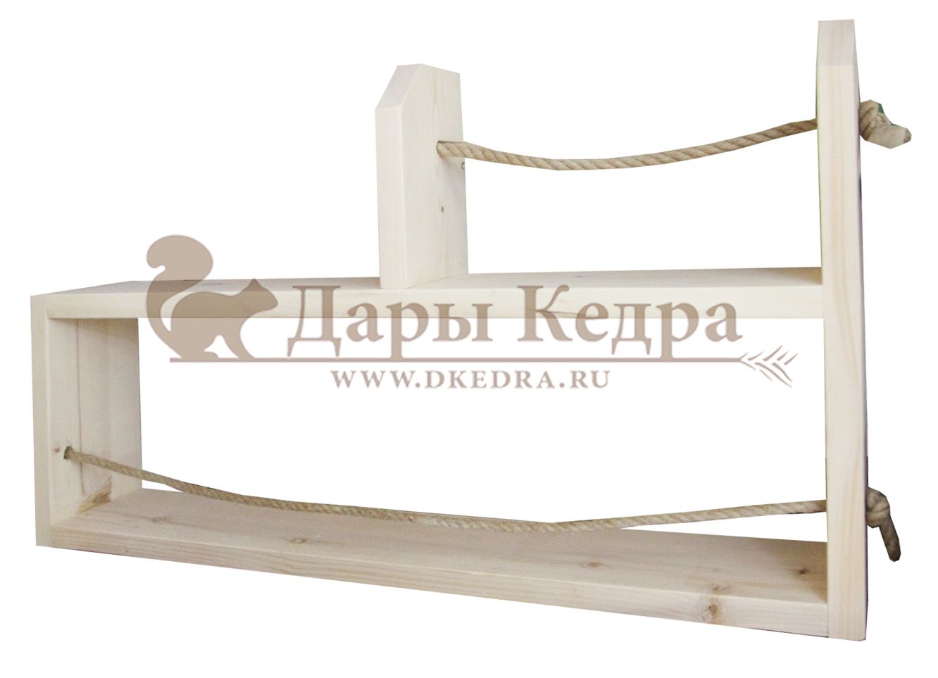 Полка из кедра с джутовой веревкой Полка из кедра станет оригинальным дополнением и украшением в бане или на даче и даже в ванной и на кухне. А тех, кто любит эко-стиль, наши полки удивят по-настоящему своей продуманностью и функциональностью! В бане: данный вариант полки подойдет для размещения коробок с фитосборами, бутылей с шампунем и других нужных банных предметов. На кухне:компактно разместятся здесь баночки для специй, сыпучих, круп.