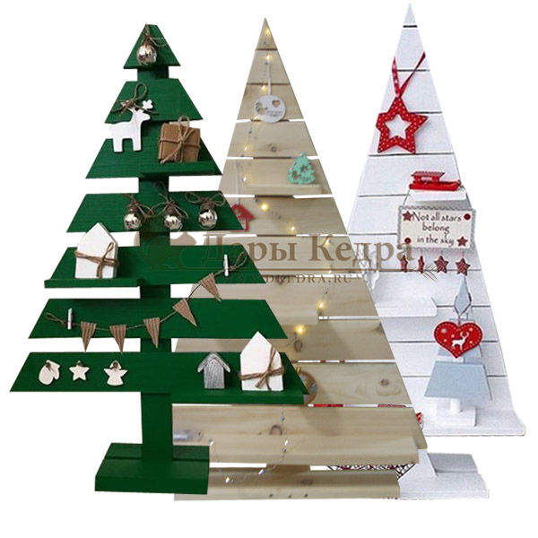 Новогодняя деревянная ёлка с полочками Хотите удивить дорогого Вам человека в канун Нового года? Предлагаем вам большой выбор аксессуаров из кедра, которые не только запомнятся в качестве ценного подарка, но и вполне могут украсить праздничный стол, разнообразить любой офис, стать привлекательным атрибутом в фотостудии. Рекомендуем ёлку из кедра для домашнего творчества с детьми. Создайте неповторимую, единственную в своём роде новогоднюю красавицу, играя с ребёнком. Это внимание и поделку он запомнит навсегда...Уж, поверьте! Деревянная елочка, по Вашему желанию, может быть покрашена в зеленый, белый, серый, фиолетовый цвета или покрыта бесцветным маслом, воском, лаком. Дополните новогоднюю красавицу гирляндой, шарами, бантами, и она засверкает по-новому. Цена ёлки указана без учета украшений. Украшения, представленные на фото, могут отличаться от имеющихся, необходимо заранее согласовывать перечень игрушек с менеджером отдела продаж. При заказе украшений цена увеличивается на 50%.