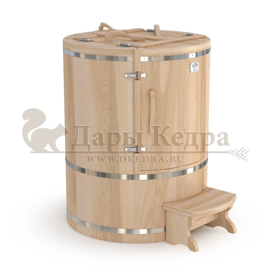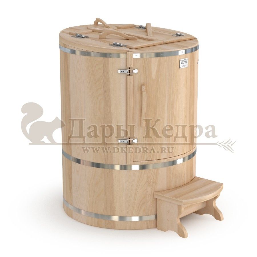Кедровая бочка (фитобочка) овальная со встроенным парогенератором «Профессиональная» Овальная форма этой кедровой бочки позволяет комфортно разместится даже высоким людям. Встроенный парогенератор исключает дополнительный монтаж. Ширина 78 мм позволяет занести бочку в помещение со стандартным проёмом в собранном виде. Толщина стенок 45 мм позволяет увеличить срок службы изделия. Подходит для коммерческого использования.