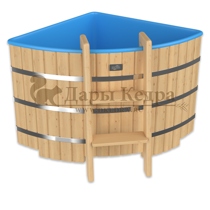Бондарная угловая купель из кедра с пластиковой вставкой