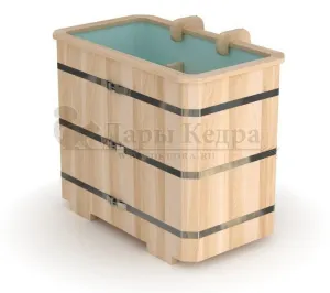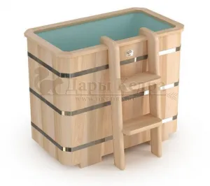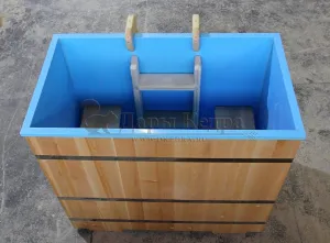 Это емкость для воды с прямоугольной пластиковой чашей. Купель предназначена для отдыха и охлаждения тела после процедур парения. Подходит для уличного и комнатного использования. Для удобства пользования овальная купель с пластиковой вставкой оснащена лавочками, приставной и внутренней лестницей из кедра.