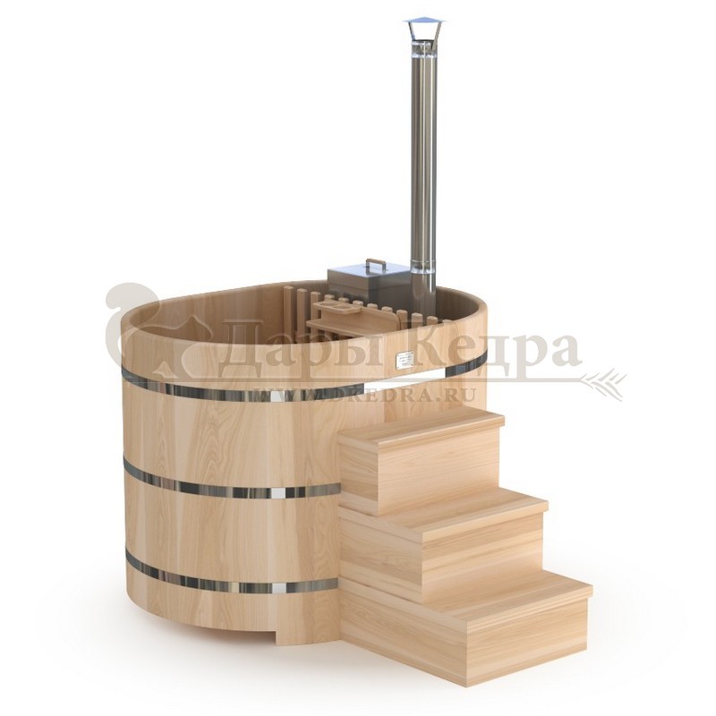Фурако овальная из кедра со встроенной печью Это уличная баня, которой можно пользоваться круглый год. Купель представляет собой овальную емкость для воды, внутри которой располагаются сиденья из кедра. Нагрев воды происходит за счет встроенной печи, которая находится внутри купели за перегородкой. Рекомендуем приобрести термокрышку и весло для перемешивания воды для ускорения нагрева. Для удобства пользования японская баня фурако оборудована внешней и внутренней лестницей из кедра. В комплектацию этой модели входит совок с длинной ручкой, который позволяет извлекать угли и золу после эксплуатации изделия. Целебная древесина кедра богата фитонцидами и эфирными маслами, которые активируются при нагревании. Таким образом, во время процедур парения организм насыщается полезными веществами.
