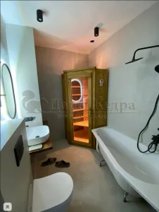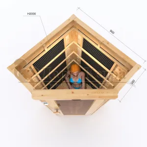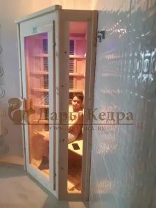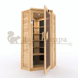 Это специально оборудованная кедровая кабина для прогрева тела человека сухим теплом. Воздух в таких парных не нагревается. Инфракрасные лучи воздействуют на тело, равномерно прогревая мышцы, суставы и органы. Карбоновые излучатели, встроенные в стены кабины, обладают мягким прогревом, что полностью исключает возможность ожога. Работает кабина за счет электричества. Установка сауны в угол, позволяет рационально использовать пространство помещения. Подходит как для домашнего использования, так и для коммерции.