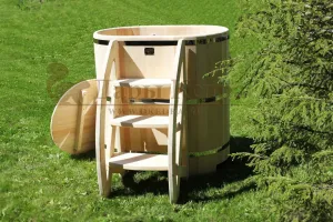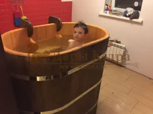 Это герметичная емкость для воды из кедра, которая используется для отдыха и охлаждения тела после процедур парения. Купель оснащена лавочками, приставной и внутренней лестницей из кедра. За счет стяжных болтов обручи из нержавеющей стали плотно прилегают к кедровой купели. Это позволяет равномерно распределять нагрузку воды и сохранить форму изделия в период эксплуатации. При правильном уходе купель для бани не рассыхается и не подвергается гниению. Овальная купель подходит для уличного и комнатного использования.