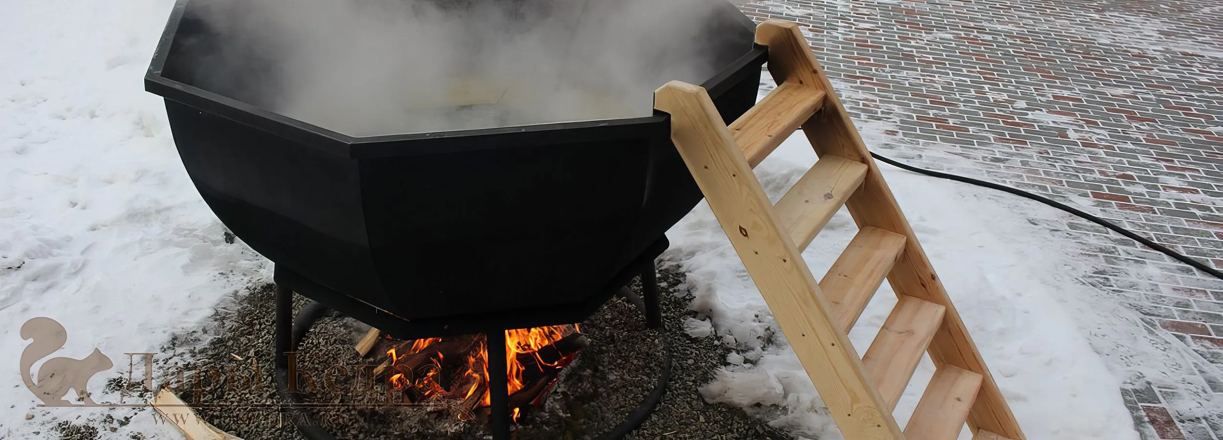Банный чан из нержавеющей стали Ø-2350 на подставке с ветрозащитой и печью СТ3