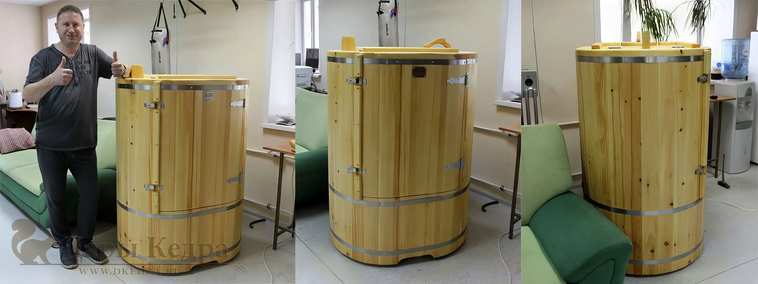 После того, как долгожданная фитобочка доставлена, возникает сразу несколько вопросов: как правильно принять изделие от курьера транспортной компании, как установить, как собрать (если разборный вид), как подключить парогенератор. Также в процессе эксплуатации изделие из кедра может рассохнуться и могут появиться небольшие трещинки. Ответим на эти и другие вопросы.