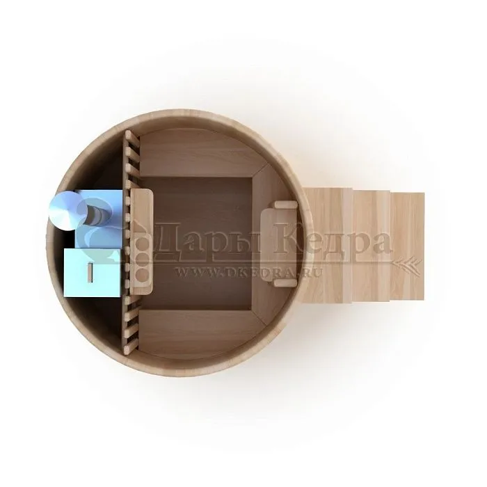 Уличная купель с подогревом как правило представляет собой круглую глубокую чашу, изготовленную из кедра. Теплая, чуть горячая вода (40-45С) в купели не только благотворно влияет на психо-физическое состояние, но и имеет иммунномодулирующее действие за счет фитонцидов, входящих в древесину кедра. Фитонциды активируются при нагревании, поэтому важно поддерживать температуру воды не ниже 37С. Она наливается таким образом, чтоб человеку, принимающему процедуры, жидкость не доходила уровня сердца. Чтобы усилить лечебный эффект, в воду можно добавить фитосборы или аромомасла.