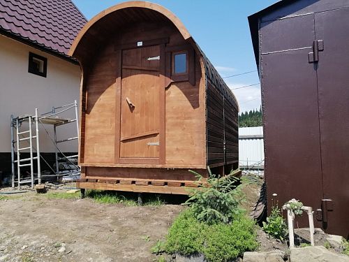 Хорошая баня, всё есть, чтобы можно было комфортно мыться и париться вдвоем-троем. Брали на дачу, довольны. Привезли быстро, установили без лишнего мусора! Спасибо, рекомендую!
