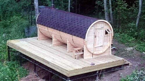 Заказывали как летний домик с дополнительными окнами и расширенной верандой, получилось очень интересно. А вместо полков у нас были лежаки. Сами купили матрасы в размер. На первое время вообще было очень удобно, потом достроили дом, переехали туда, а этот переоборудовали в баню. Докупили печь в Дарах Кедра. Все просто т удобно.